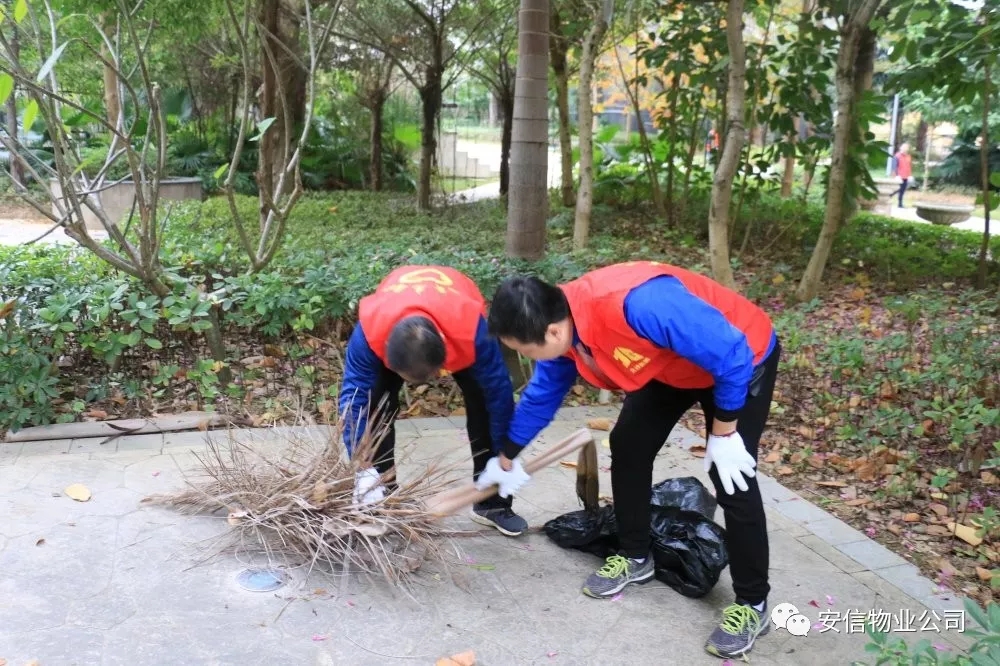 2019年12月24日,安信黨支部在南寧市長湖鳳景灣小區(qū)開展了“清潔環(huán)境、美化小區(qū)”為主題的黨日活動。重點清理小區(qū)內(nèi)綠化帶雜草、小區(qū)居民樓消防通道的堆積雜物以及清理各個衛(wèi)生死角,進一步提升小區(qū)環(huán)境衛(wèi)生。