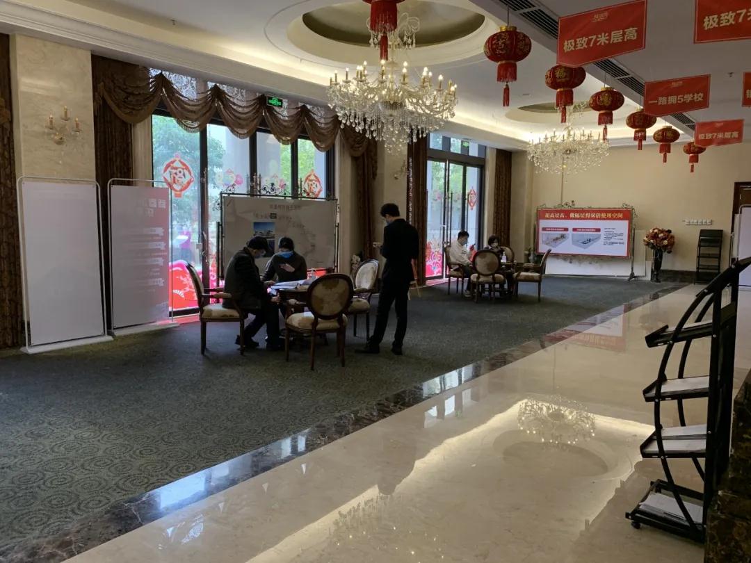 現場還準備了充足的口罩,進入前測量體溫,看房、簽約客戶每組限定在3人以下,并實行一對一引導看房、簽約。