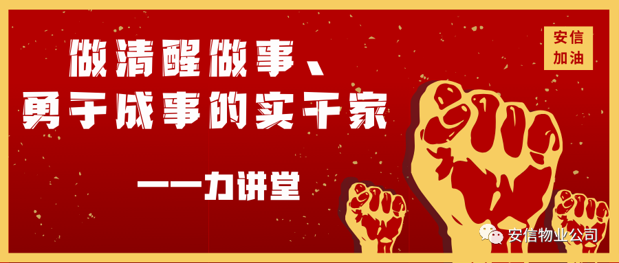 丘強從九個方面與大家探討了如何“做清醒做事、勇于成事的實干家”。一是要講究領導藝術,一個高明的領導,講究領導藝術,知關節,得要領,把握規律,掌握節奏,舉重若輕;二是中層要有危機意識,中層只有積極進取,提升執行力才能跟上企業的步伐,“慈不帶兵,義不理財”,對待下屬要高要求、高目標、高標準,全面提升公司效率;三是要加強溝通,遇到問題擺上臺面溝通解決,同時要善于換位思考;四是注重團隊合作,“一個人可以走得很快,但一群人卻可以走得更遠”,個人融入團隊,服從總體安排,遵守紀律保證戰斗力;五是提升企業競爭力,安信物業公司是一個完全市場競爭的企業,賺錢是企業存在的第一條件,不賺錢企業活不下去,要以“好房子、好物業、好幸福”的目標提升自身服務品質;六是擔當實干,反對形式主義、官僚主義,大力弘揚實事求是、求真務實精神,推進工作要實打實、硬碰硬,解決問題要雷厲風行、見底見效,面對難題要敢抓敢管、敢于擔責;七是容錯糾錯,為擔當者擔當,為負責者負責,支持大膽干、大膽闖,鼓勵敢擔當、敢作為;八是廉潔從業,“勿以惡小而為之,勿以善小而不為”,清清白白做人,干干凈凈做事;九是實行末位淘汰,要干就好好干,千萬不能混日子,得過且過,企業不養懶人。