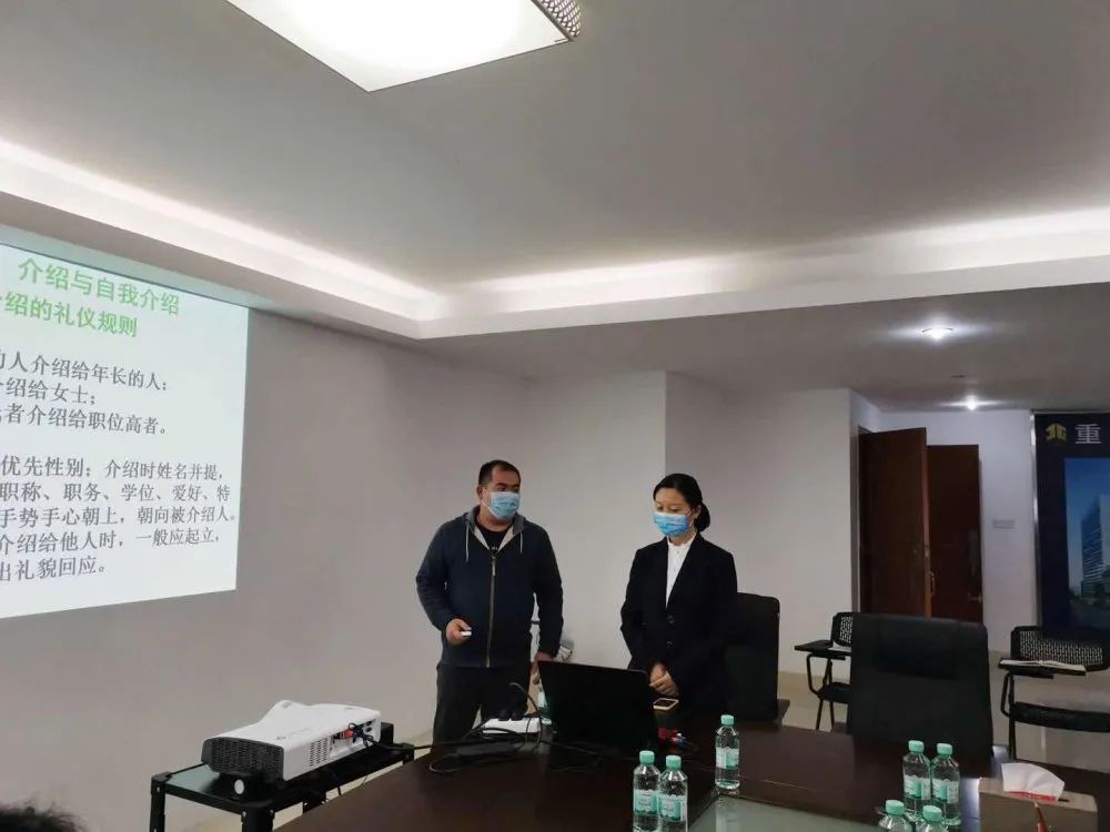 本次培訓邀請了安信物業公司周其兵擔任講師。周其兵老師通過生動形象的講解與PPT演示,向參訓員工介紹了商務禮儀的含義、特點等理論知識,全面講解了儀表著裝、舉止交往、溝通禮儀、乘車禮儀、用餐禮儀、電梯禮儀和電話禮儀等基本禮儀常識,幫助全體員工更好地理解和掌握在各種商務活動中的商務品味修養和魅力的技巧。