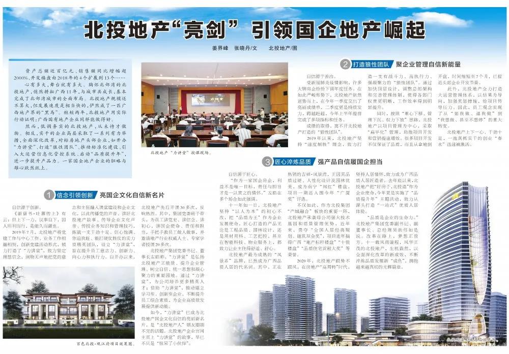 “品質是企業的生命力”北投地產集團黨委副書記、副董事長、總經理吳洪偉如是說。改革在路上,夢想正前方。十一載風雨兼程,風華正茂的北投地產,生機盎然,以全面深化改革的新成效,不斷淬煉品質發展新“成色”,擁抱越來越真切的光輝篇章。(廣西日報)2020/08/07