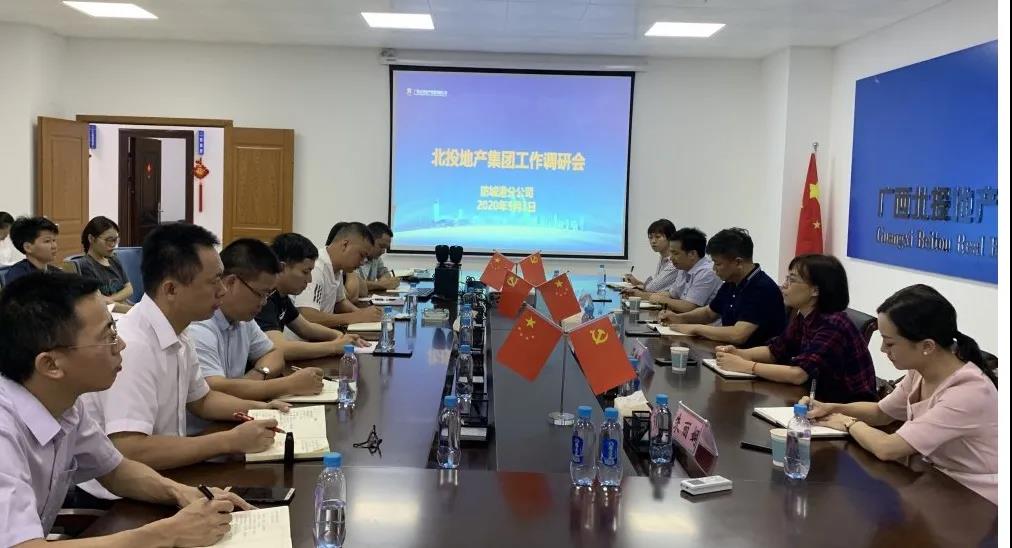 9月3日下午,北投地產集團黨委書記、董事長左皓,營銷總監羅玲玲一行到防城港分公司調研指導工作。