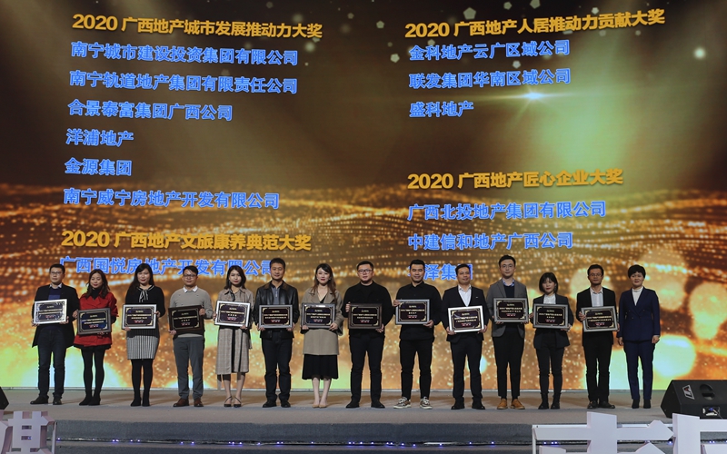圖為北投地產集團代表領取“2020廣西地產匠心企業大獎”