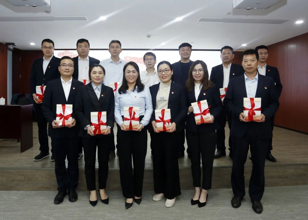 培訓(xùn)班上,廖勝平、左皓為集團(tuán)公司各黨支部書記代表授黨史學(xué)習(xí)書籍。