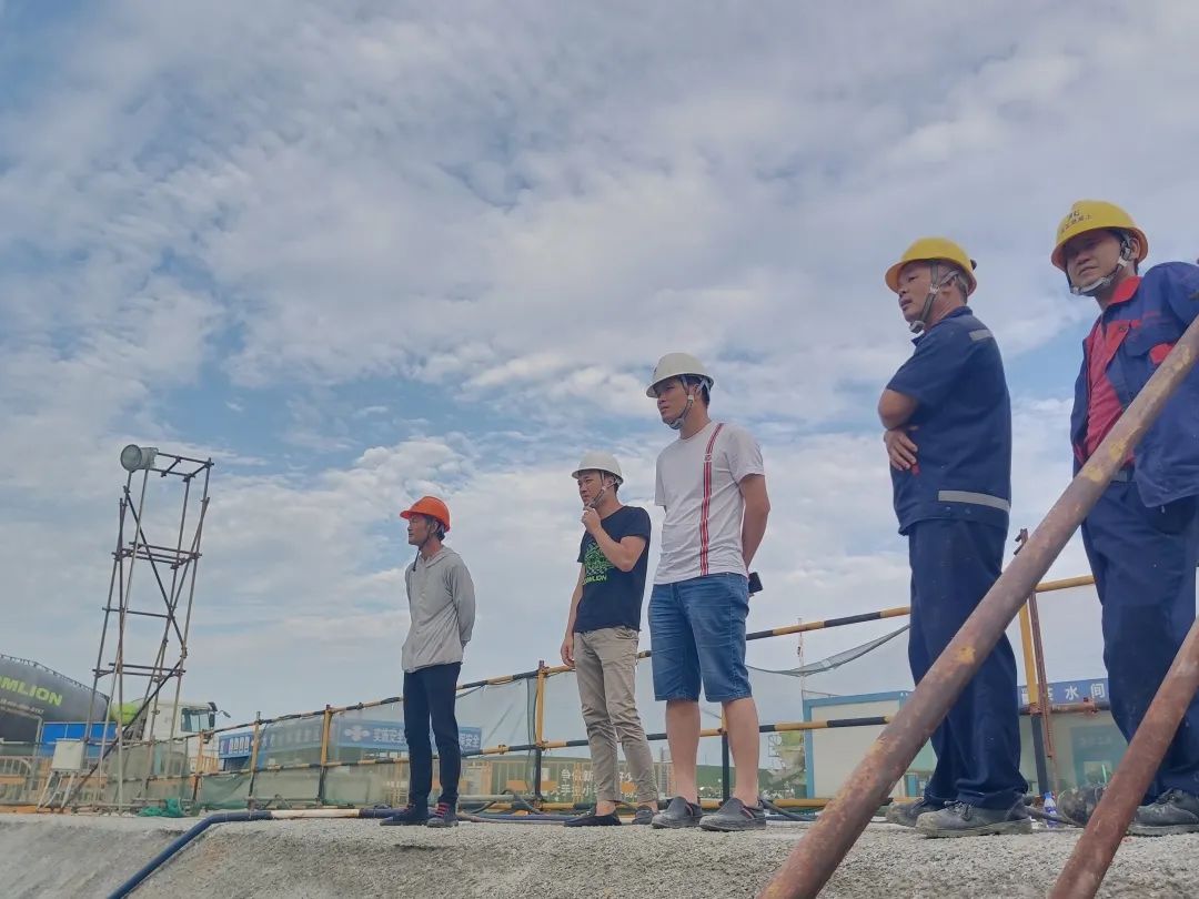 ▲直屬單位大正混凝土公司黨支部書記、董事長、總經理周世財帶隊深入項目施工現場