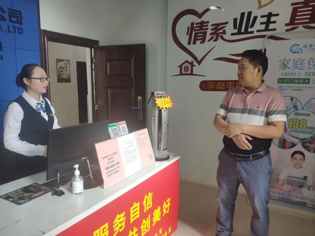 ?▲直屬單位安信物業公司黨支部書記、董事長、總經理利海峰在吉祥·鳳景灣服務中心檢查崗位員工值守情況