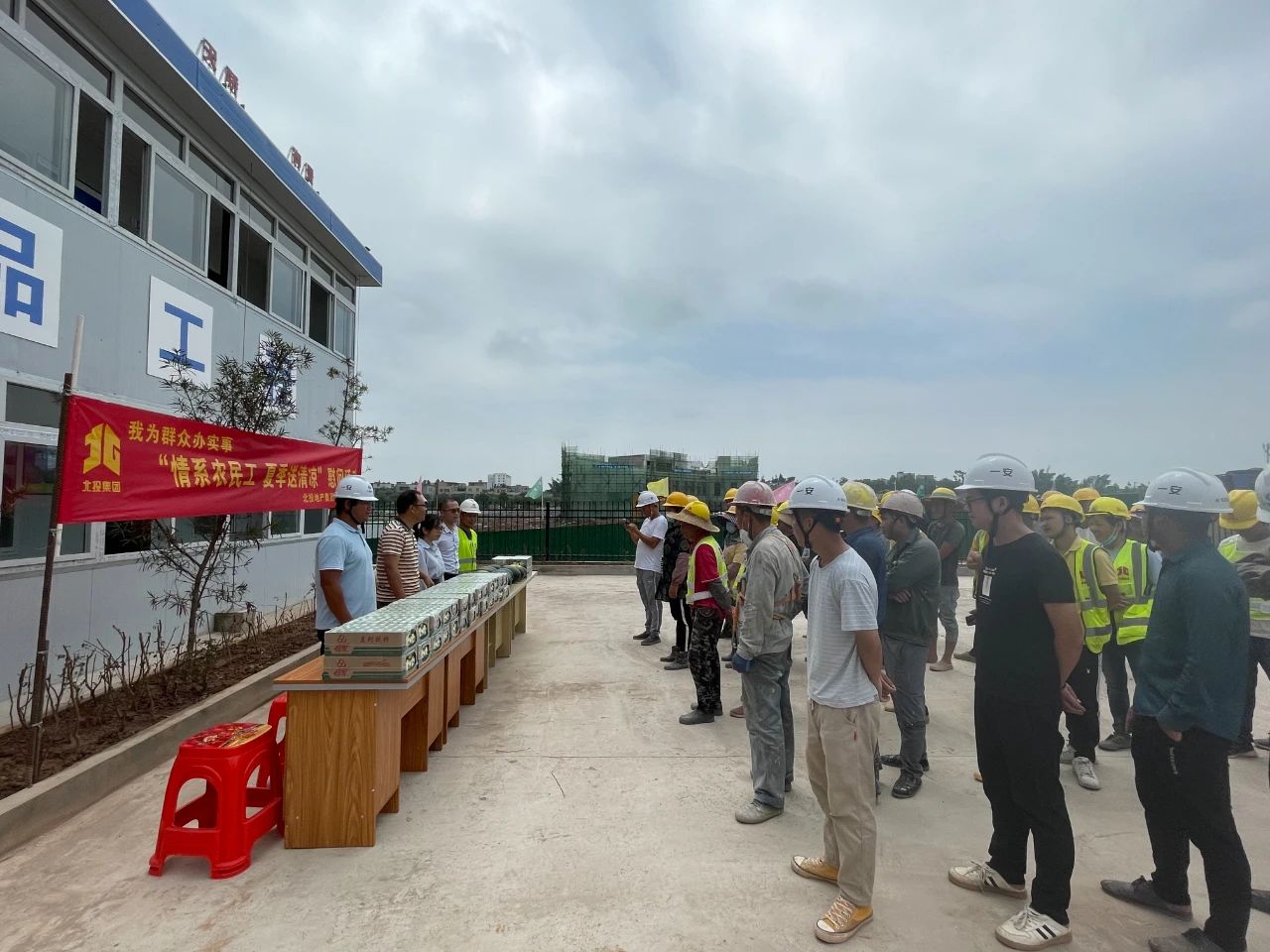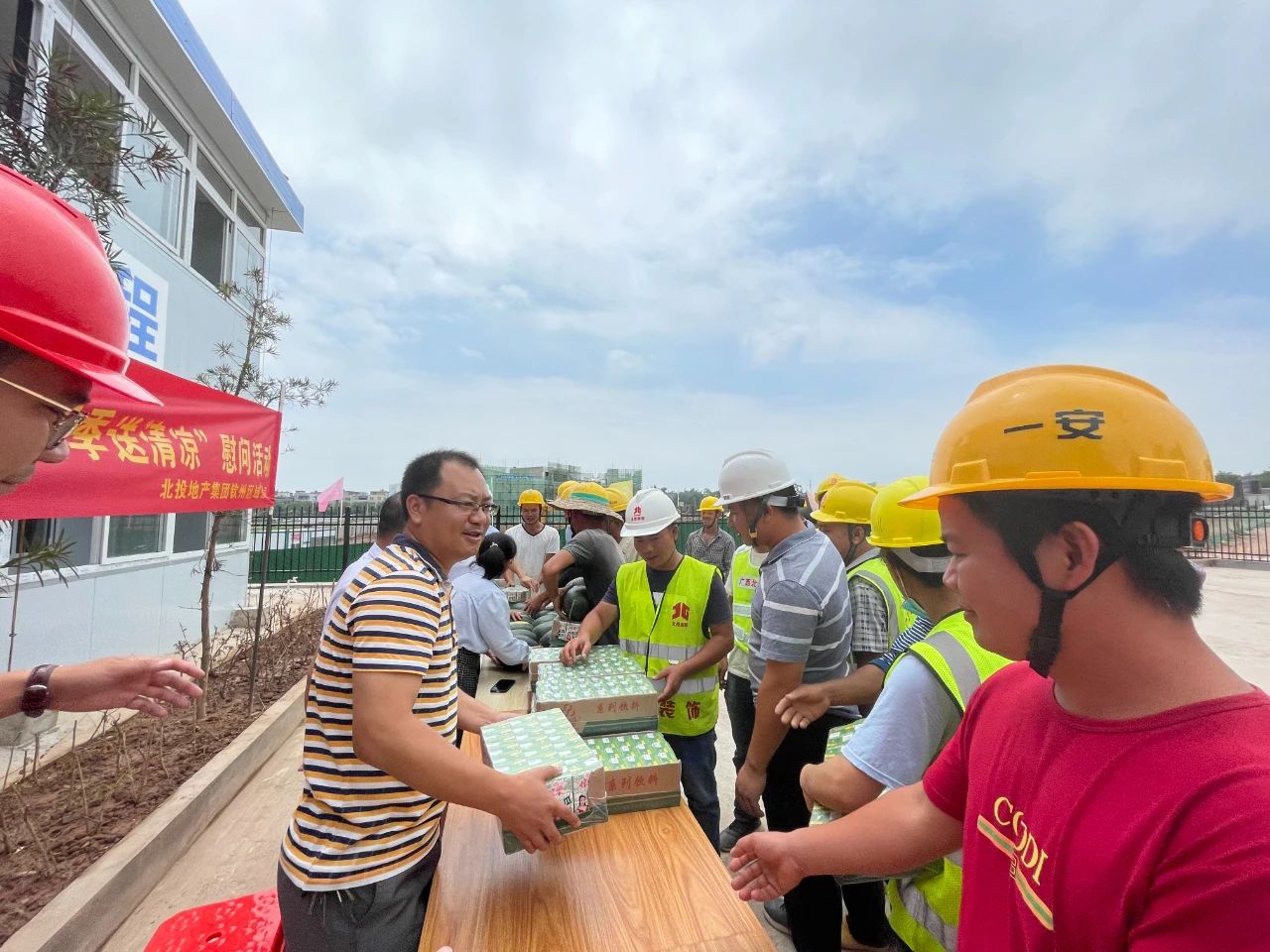 為表達對在高溫下作業的一線勞動者的關心關愛,5月25日,北投地產集團直屬單位欽州區域公司開展我為群眾辦實事——“情系農民工 夏季送清涼”慰問活動。
