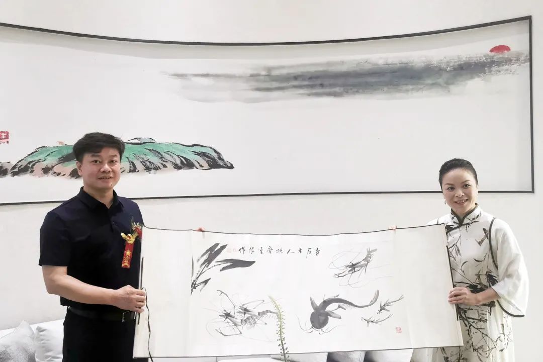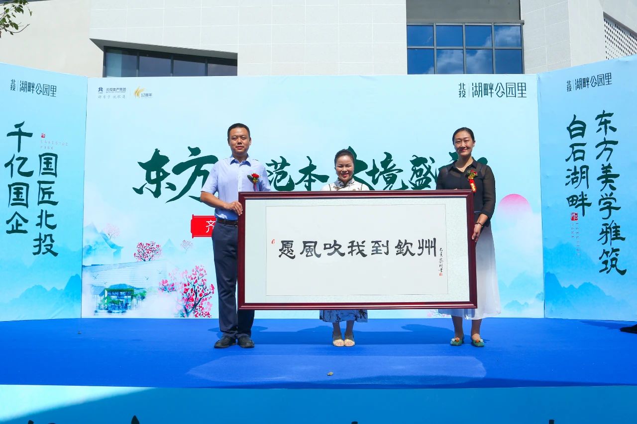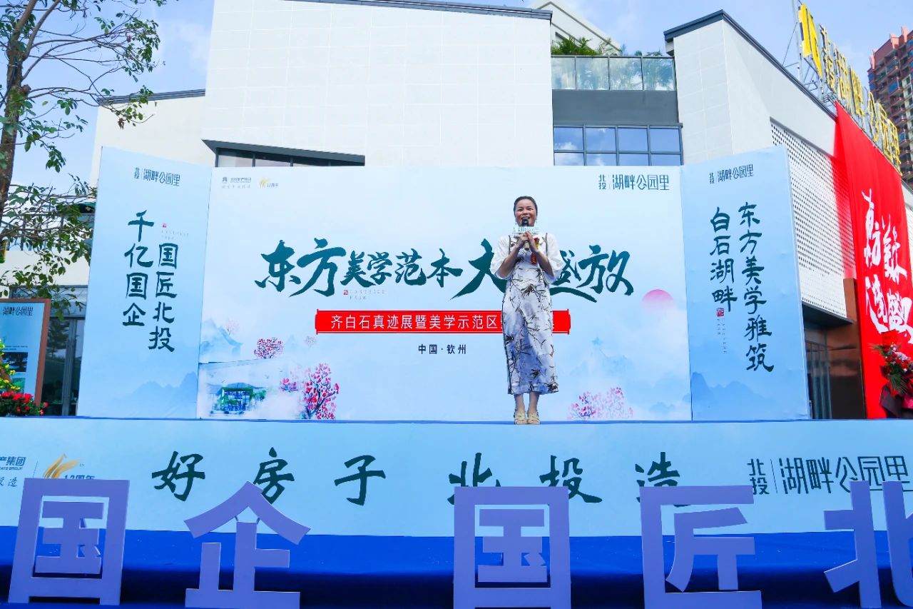 近百年后的今天,齊白石曾孫女齊駙應北投地產集團邀請,親臨盛典現場,向大家分享了齊白石與欽州結緣的趣事及“齊派”藝術知識,并贈予北投·湖畔公園項目作品《愿風吹我到欽州》。