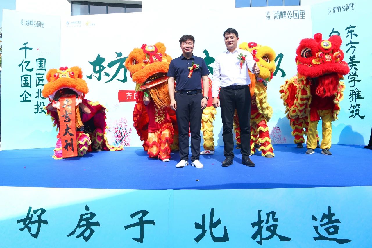 左皓、吳洪偉為“雄獅點睛”,寓意北投·湖畔公園里項目事業興旺、吉祥如意、開盤大賣。