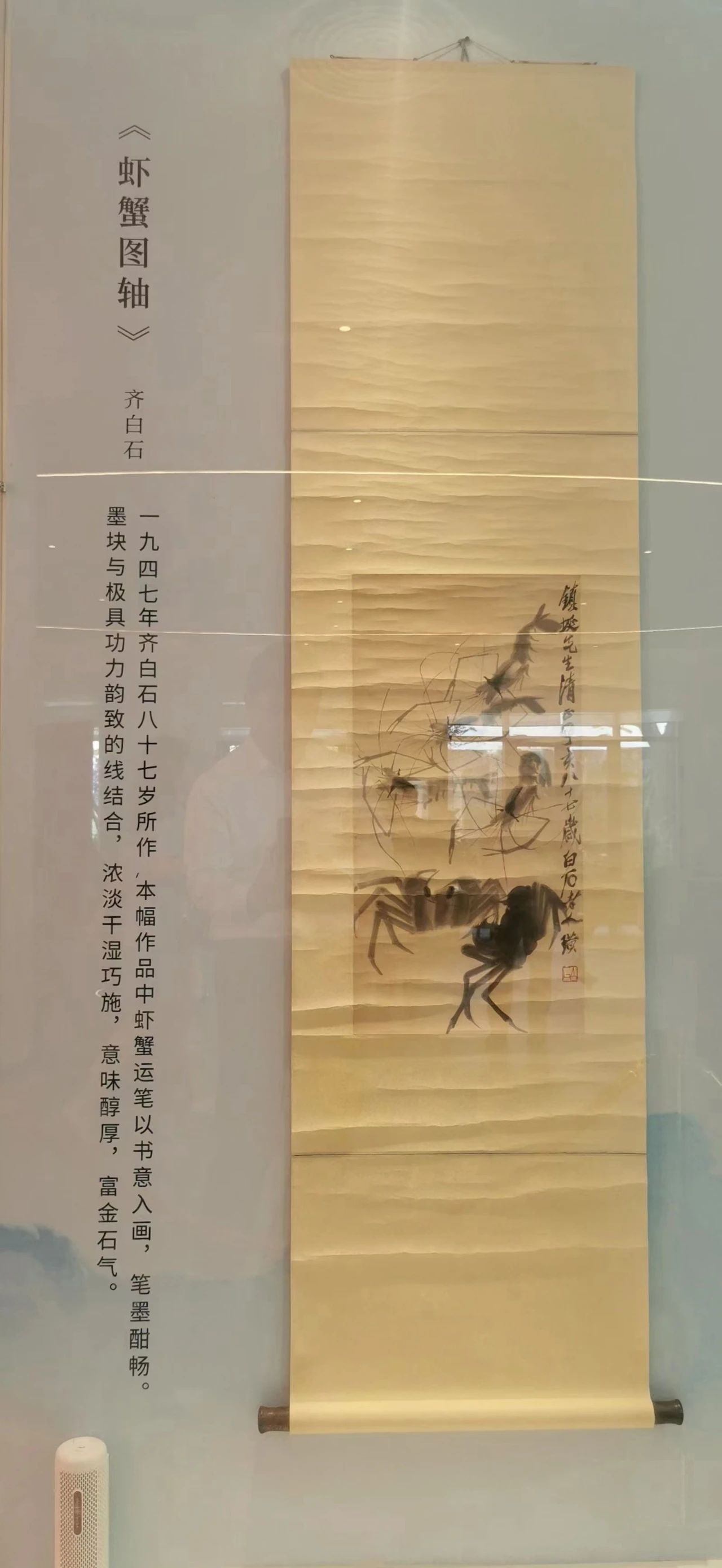 ▲現場展出的齊白石真跡《蝦蟹圖軸》