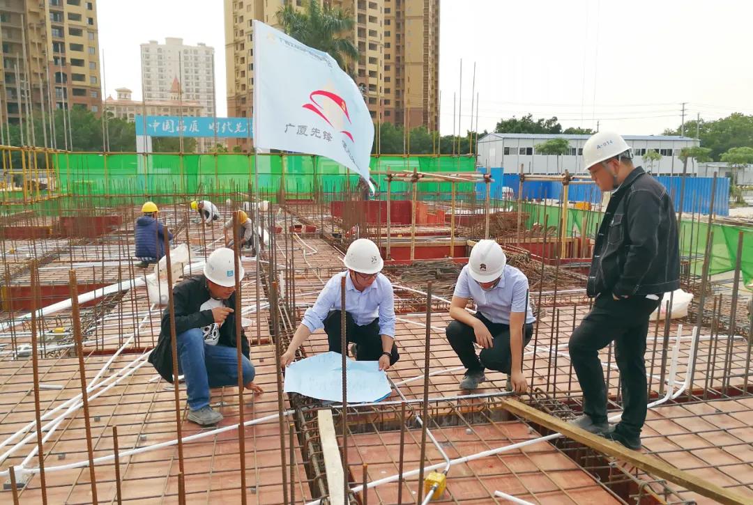 ▲北海區(qū)域公司工程管理人員在北投觀海灣項目核對水電管線預埋