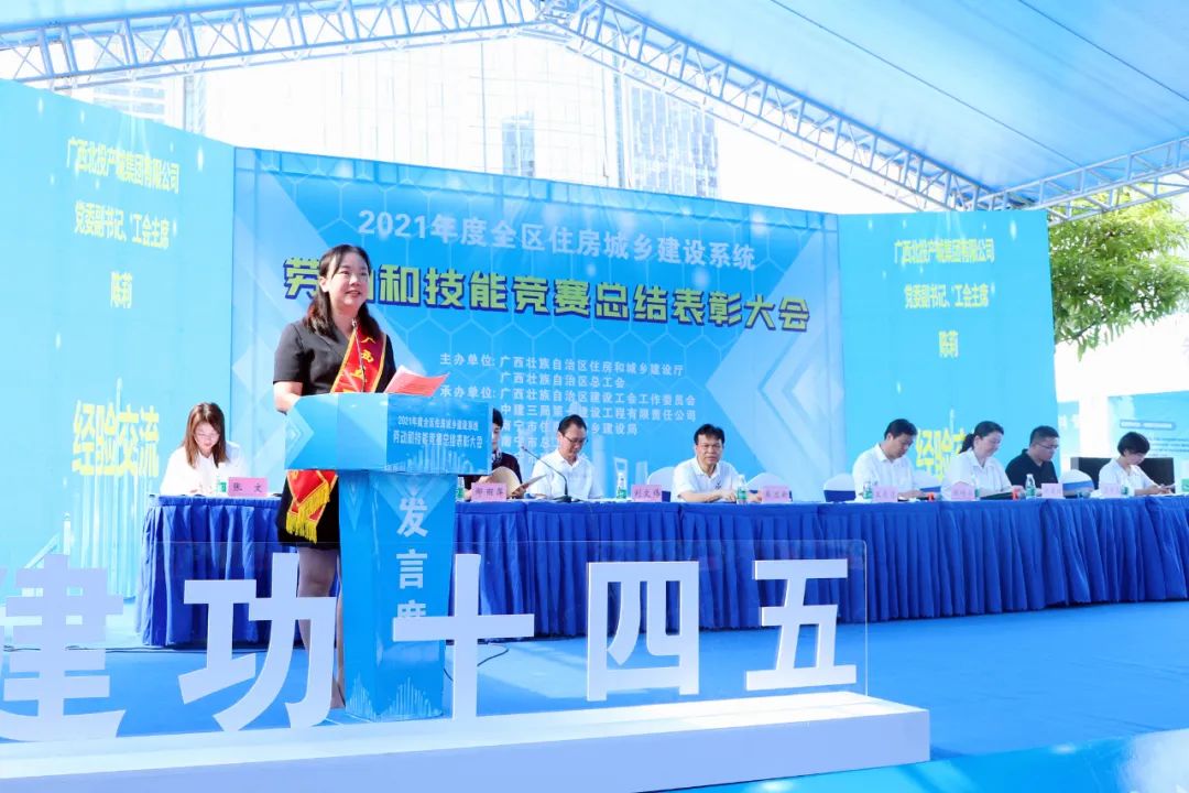 8月25日上午,2021年度全區(qū)住房城鄉(xiāng)建設(shè)系統(tǒng)勞動(dòng)和技能競(jìng)賽總結(jié)表彰大會(huì)在南寧市五象新區(qū)召開。北投產(chǎn)城集團(tuán)被授予2021年度廣西五一勞動(dòng)獎(jiǎng)狀,北投時(shí)代、北投溪境項(xiàng)目負(fù)責(zé)人童宇獲評(píng)全區(qū)住房城鄉(xiāng)建設(shè)系統(tǒng)城市更新項(xiàng)目建設(shè)示范性勞動(dòng)和技能競(jìng)賽優(yōu)勝個(gè)人。公司黨委副書記、董事、工會(huì)主席陳莉應(yīng)邀作經(jīng)驗(yàn)交流發(fā)言。